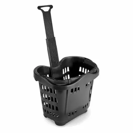 El precio original era: S/150.00.S/141.30El precio actual es: S/141.30.Canastilla de plástico con ruedas de 55 LTS – Color Negro